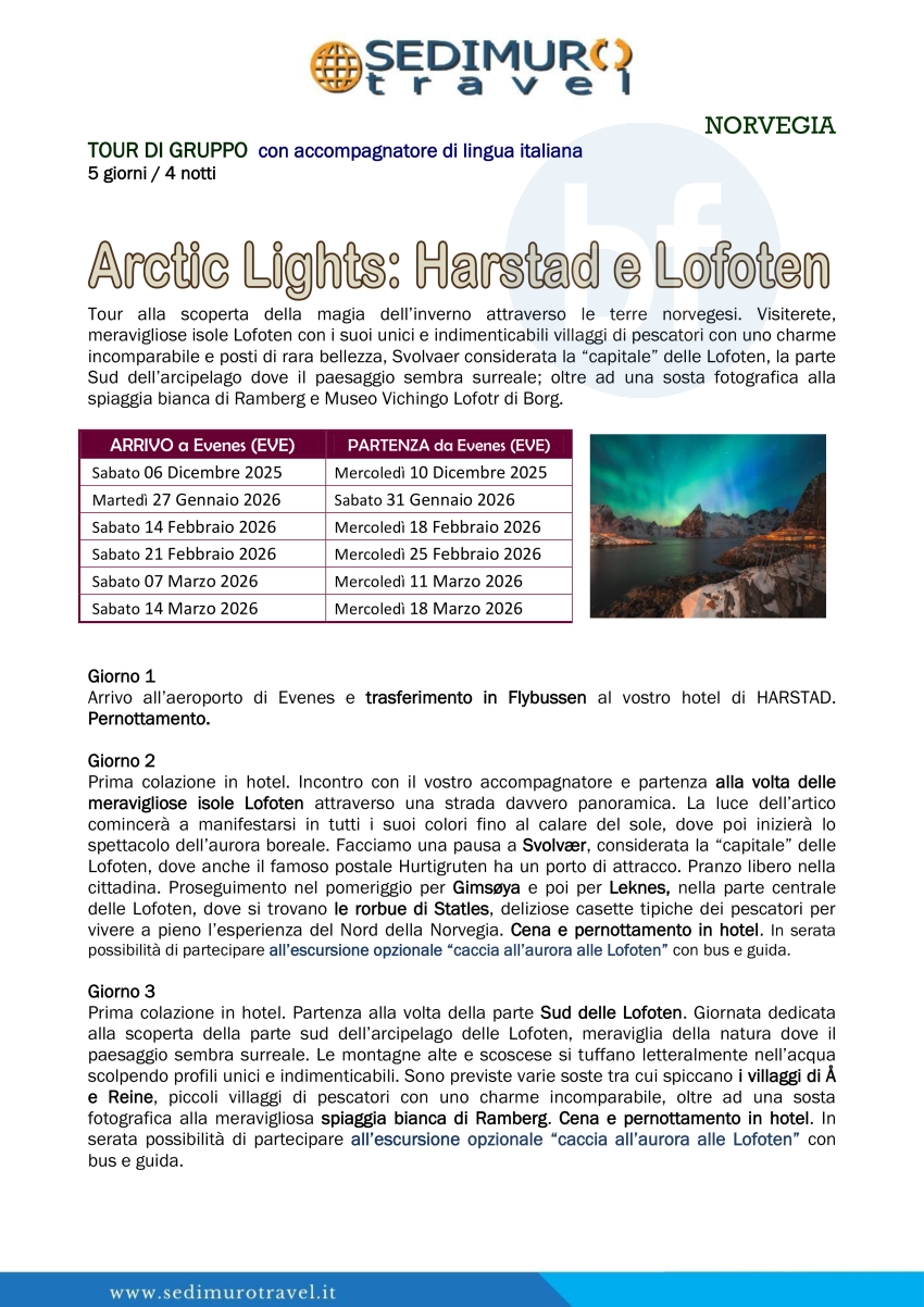 Arctic Lights: Harstad e Lofoten da Evenes 5 giorni