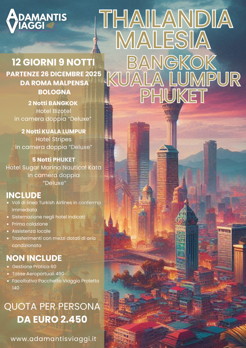 Thailandia Malesia - Bangkok Kuala Lumpur Phuket 26 Dicmebre